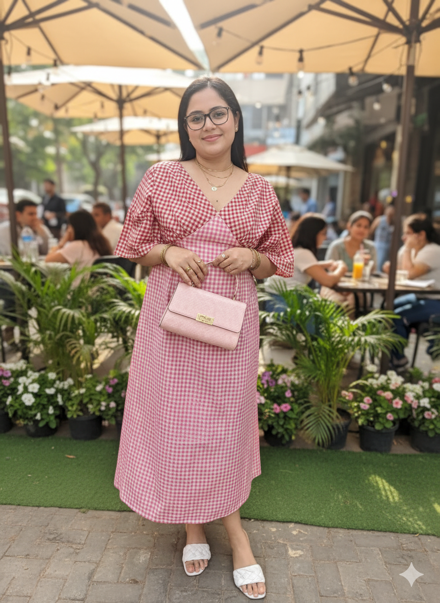 A line Multicolour Gingham Dress