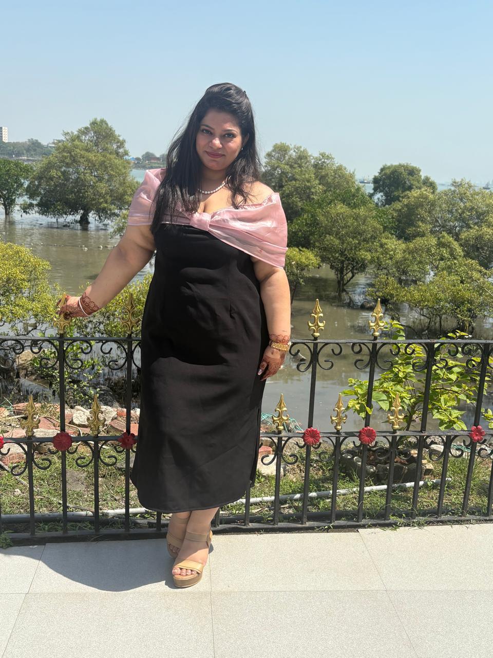 Diana Bow Midi Dress - Black
