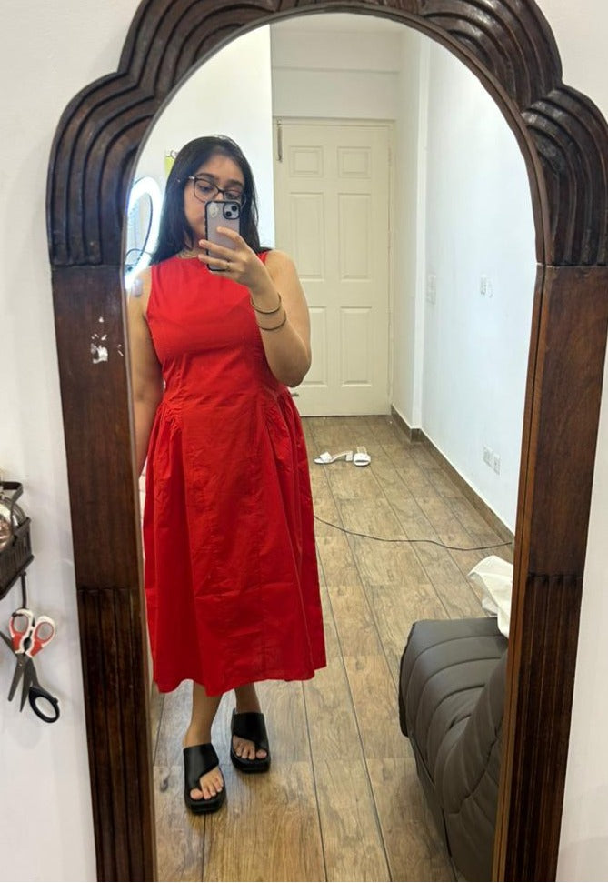 Deep Red Gathered Maxi Dress