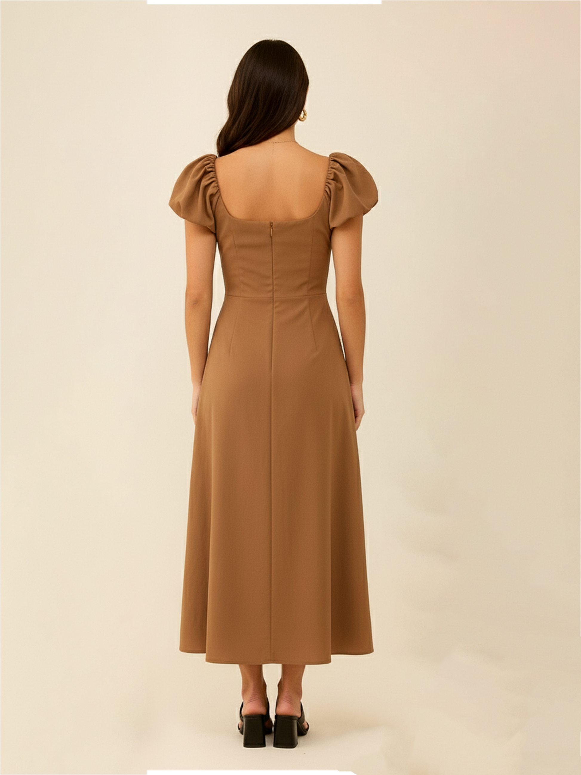 This Bella Puff Sleeve A-line Dress features a playful fit, cinching perfectly at the waist with charming short puff sleeves that add a flirty, fun vibe to your look. Perfect for twirling through your day in style!
