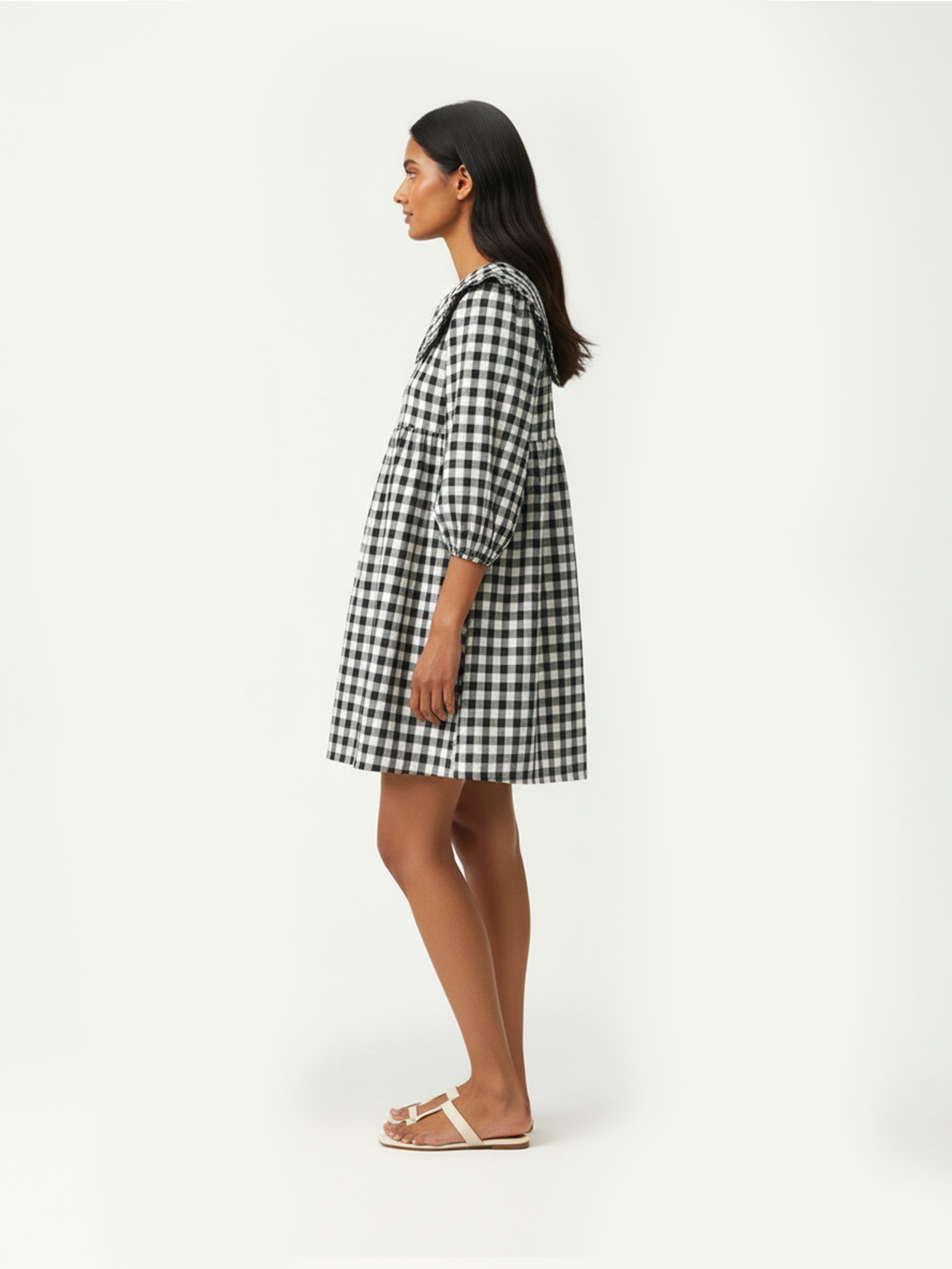 Step into summer with our charming Gingham A Line Dress in black and white! This playful cotton frock features an adorable Peter Pan collar, delightful puff sleeves, and flattering waist gathers that create the perfect silhouette. The classic red gingham pattern adds a touch of nostalgic charm to your wardrobe that's sure to turn heads!